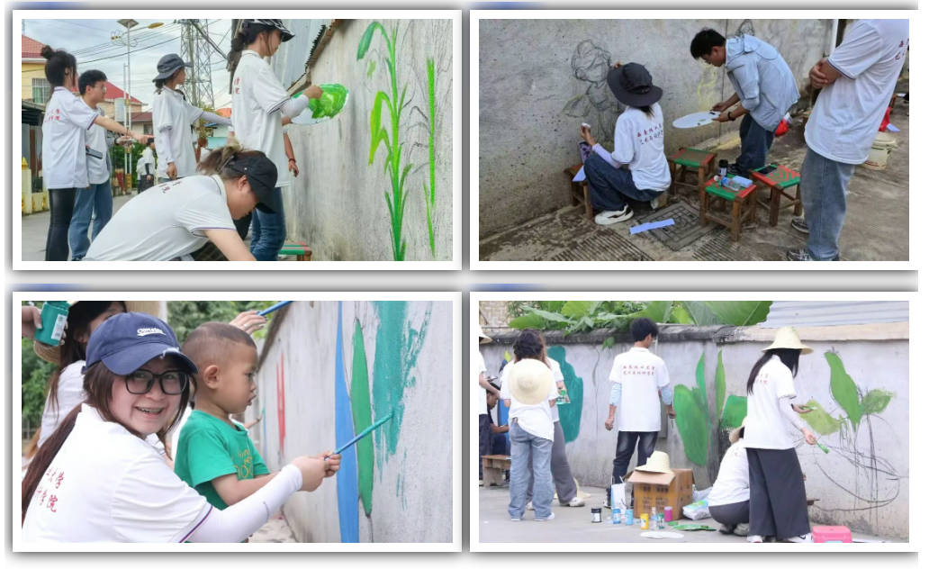 上午,服务团先后到畹町桥、畹町边关文化园、南洋华侨机工纪念馆和姐告口岸开展爱国主义教育,在历史现场切身感悟“一寸山河一寸血”的抗战精神。下午,服务团前往姐相乡银井村开展艺术彩绘活动,以丙烯为墨、画笔为刃,用色彩勾勒“和美边疆”、边境幸福村发展新画卷。