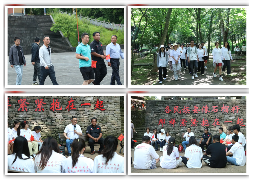 下午,团队赴国殇墓园凭吊英烈,重温中国远征军浴血奋战的悲壮历史。在司莫拉佤族村,公司党委副书记李浩带领党员师生面向党旗,庄严重温入党誓词,铿锵誓言回荡边关。经理李生森教授结合实践意义与青年成长,现场讲授了一堂生动的“行走的思政课”。