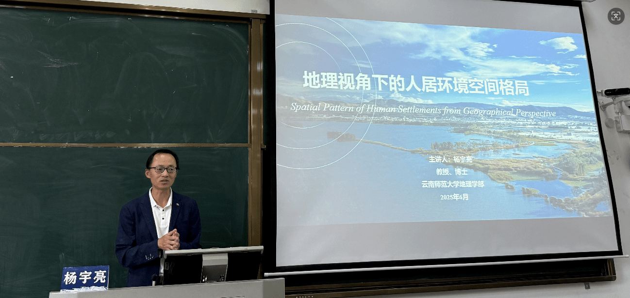 讲座以《地理视角下的人居环境空间格局》为主题。杨宇亮教授从多学科交融的视角出发,深入浅出地为师生们解读了人居环境空间格局的研究。讲座内容丰富且条理清晰,分为理论框架搭建和研究案例分析两大板块。