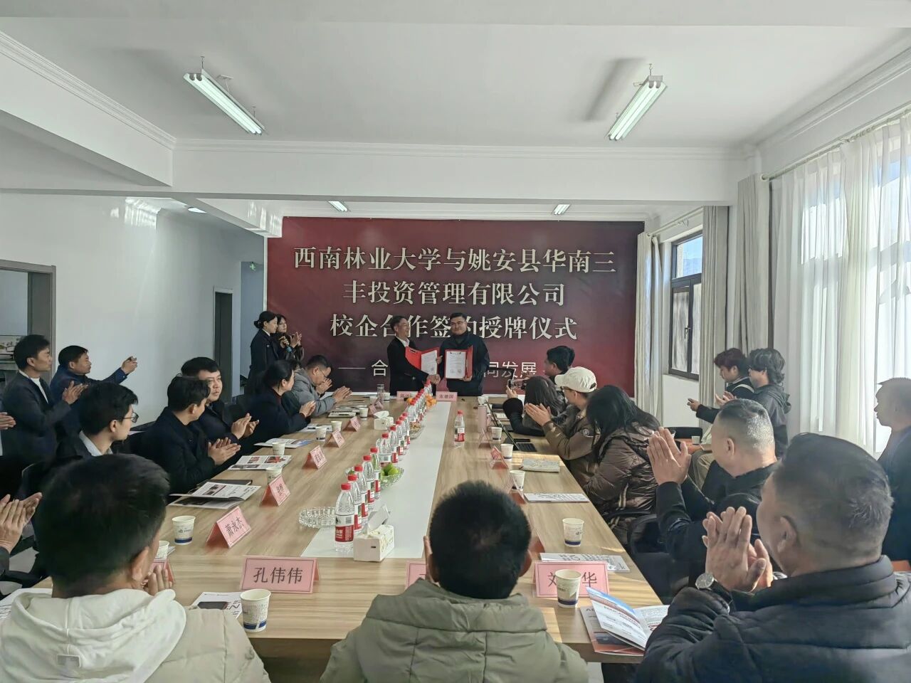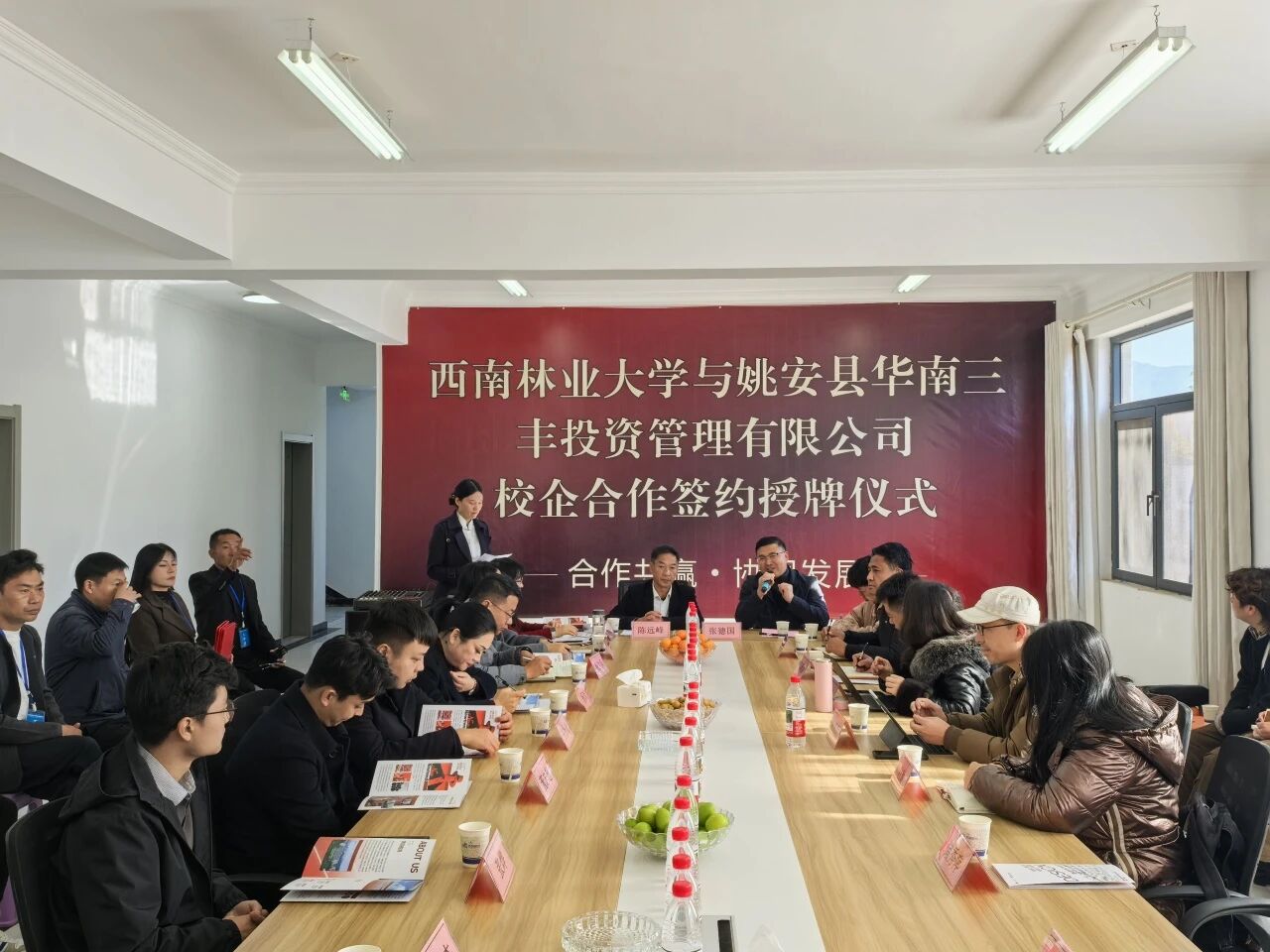 为深化产教融合、校企协同育人。12月9日,公司党委书记张德国率艺术与科技系、产品设计系、环境设计系负责人及就业创业师生一行11人赴姚安县华南三丰投资管理有限公司开展“访企拓岗促就业”专项行动。姚安县委副书记杨馥华,县教体局、工业信息化商务科技局等相关部门负责人出席座谈会;姚安县华南三丰投资管理有限公司董事长陈远峰、总经理黄林芳及公司各部门核心管理团队参加座谈。