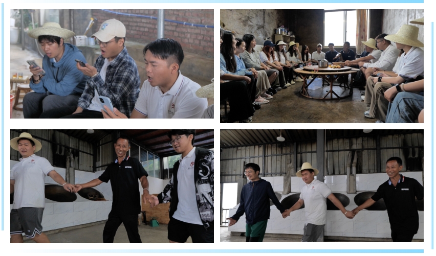 实践团走进南本老寨, 通过与当地群众交流互动,学习了歌曲《让我听懂你的语言》,感受原汁原味呈现西双版纳比较真实的风景画卷,现场气氛热烈,歌声嘹亮,传递出深厚的民族情谊和团结精神。大家还齐唱了《我和我的祖国》《歌唱祖国》等。