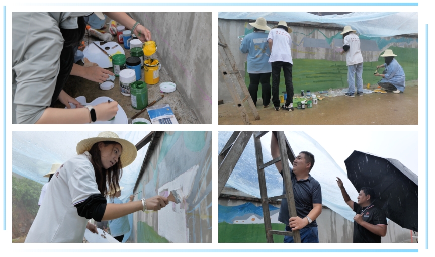 实践团还在南本老寨深入了解了民族团结和乡村振兴发展的故事,并围绕“卫国戍边”主题展开了宣讲。实践团结合当地特色发挥专业特长在村寨外墙进行艺术设计创作,呈现出一幅幅“党的光辉照边疆,边疆人民心向党”的生动画卷。
