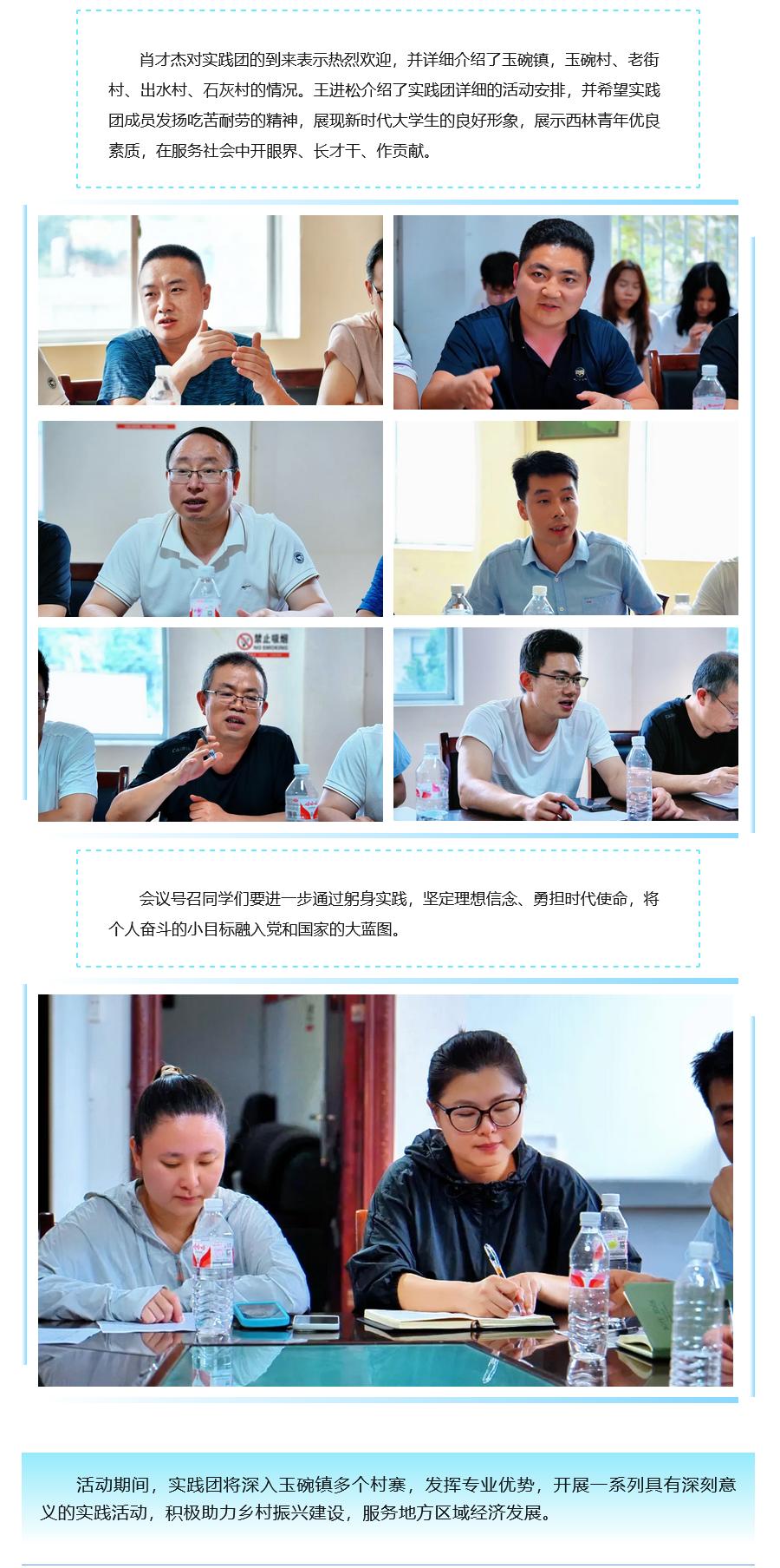 8月4日,9728太阳集团9728太阳集团“藝树之麓”暑期实践团赴昭通市大关县玉碗镇开展实践活动,并在玉碗镇玉碗村村委会召开座谈会。玉碗村村支书肖才杰,中央党校驻玉碗镇工作队长杨伟敏,昭通市生态环境局驻村队员李敏鹏,9728太阳集团驻村工作队刘江华、姜雯、吴梦帆、王联智、杨作鹏等老师,9728太阳集团团委书记王进松,9728太阳集团9728太阳集团2008级员工张渂铄一行4人,实践团17名成员参加座谈会。座谈会由王联智主持。