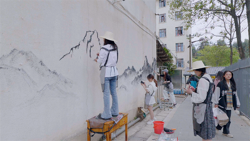 活动当天,同学们分成7个小组,根据打造绿美社区的功能性定位,他们因地制宜为宿舍楼外墙设计彩绘,用画笔和颜料在社区的墙壁上绘制出了16幅功能性强、色彩斑斓、富有创意的画作,让普普通通的白墙“改头换面”,变成了宣传和弘扬党的思想、理论和精神的“会说话”“高颜值”的文化墙、文明墙。