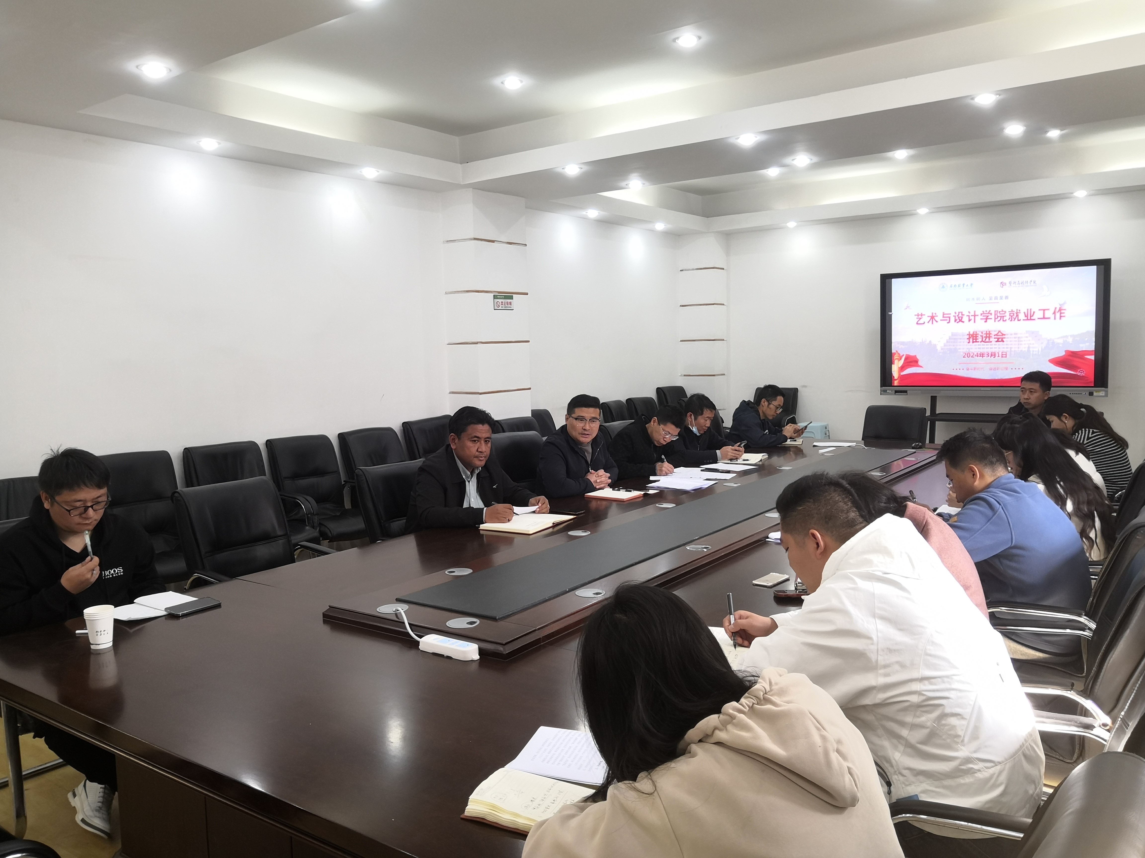 3月1日上午,9728太阳集团在设计楼302会议室召开2024届毕业生就业工作推进会。公司党委书记张德国及全体辅导员(班主任)参加会议,公司党委副书记李浩主持会议。