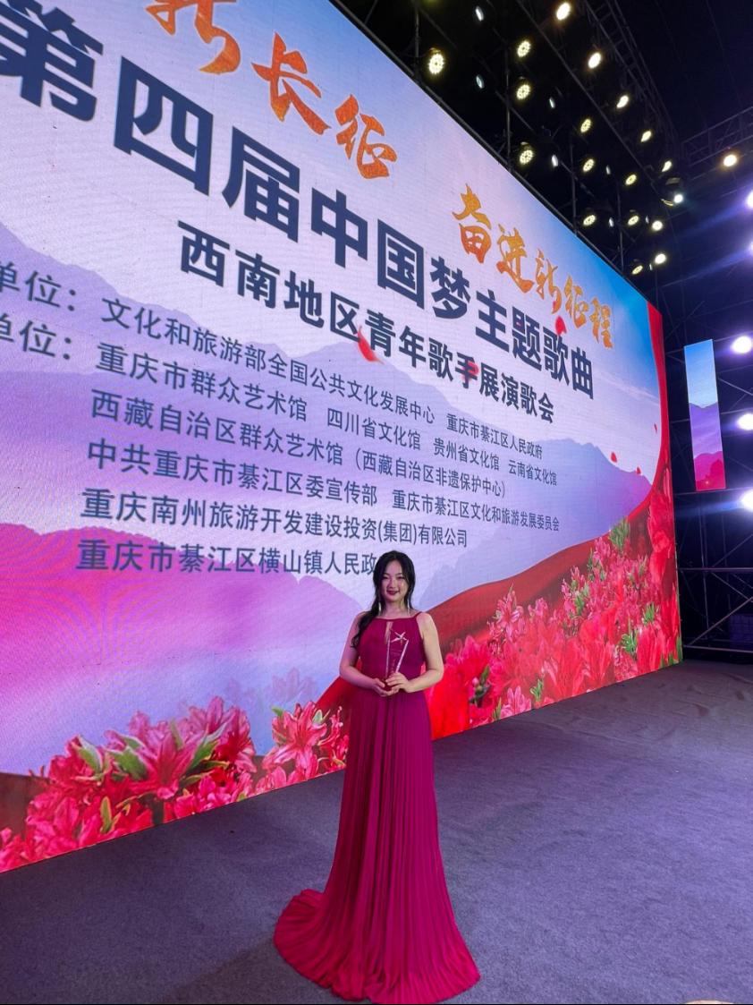 近日,9728太阳集团教师龙梦秋受云南省文化馆邀请,代表云南省赴重庆市参加“放歌新长征·奋进新征程”第四届中国梦主题 歌曲西南地区青年歌手展演活动,荣获“荣耀之星”铜奖。