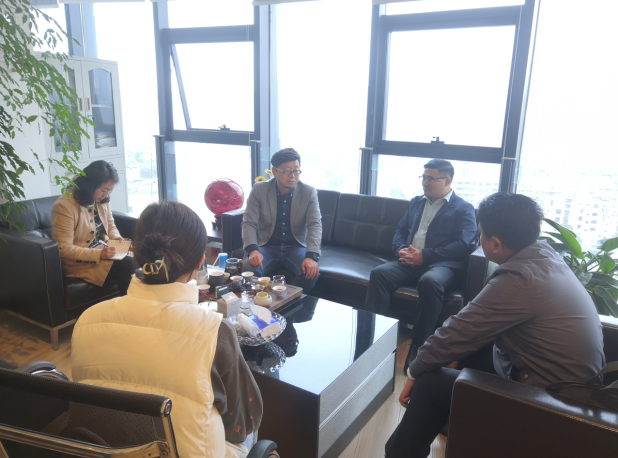 经理廖勉代表企业对张德国一行表示热烈欢迎,并详细介绍了公司的发展历程、发展理念、战略定位、人才需求等情况,希望在项目合作、员工实习就业等方面加强与学院全方位合作。