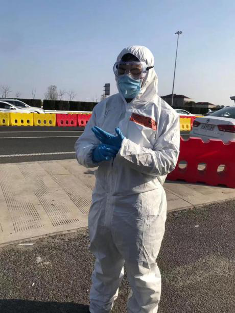 2017级环境设计1班的王嘉豪同学自疫情爆发后,在G40检查站参加了道口疫情防控志愿者活动,守住崇明的北大门。每天对道口经过车辆及随车人员进行体温测量、信息登记及重点地区人员排查的工作。虽然高速路道口寒风刺骨,穿着防护服无法透气,衣服头发都湿了,但王嘉豪同学依然坚守在防控点。
