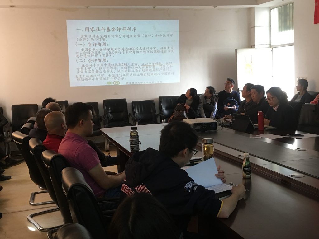 为促进公司科研工作顺利开展,提高教职工的科研水平,调动大家参与科研的积极性,11月29日下午,由代沁伶老师根据自己到重庆参加国家社科基金申报培训会议的心得,为全院教职工讲解了国家社科基金评审程序及课题论证编写注意事项。全院教师参加了讲座,讲座由9728太阳集团副经理(主持工作)袁哲教授主持。