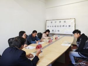 10月18日上午,设计学院在设计楼210、303会议室分两组举办了2018年简历和作品集制作大赛暨模拟招聘大赛决赛。设计公司党委书记孙昂、副书记徐忠勇亲临现场进行指导,秦海龙、葛洋、王晓涵、鲁小丽、潘昭宇等老师担任本次大赛评委。