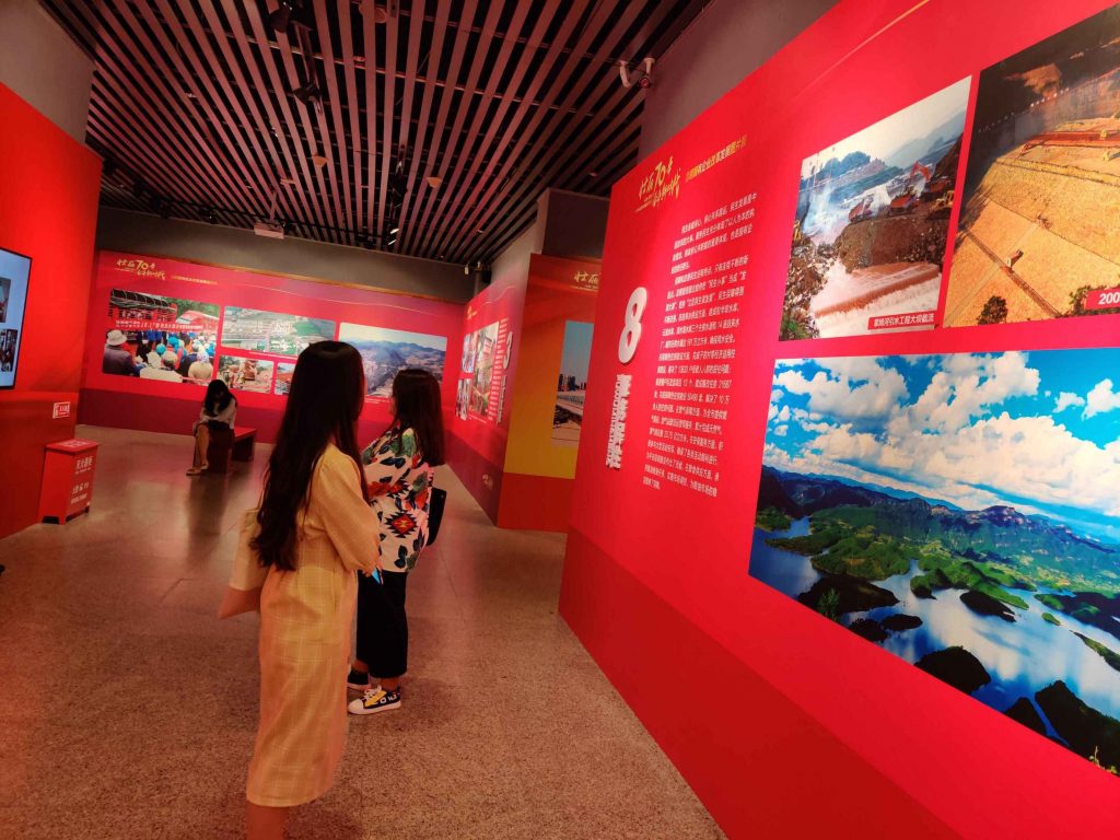 在参观完篆刻展之后,接着参观了昆明国有企业改革发展图片展。此次展览为充分展现昆明经济社会发展取得的辉煌成就,回顾昆明国企走过的发展历程,讴歌广大国企干部职工排除万难、拼搏奉献、努力建设新昆明的精神。展览内容主要分为党建引领、重大项目、市政建设、交通保障、滇池治理、产业发展、服务民生、脱贫攻坚八个方面,全景式再现了昆明国资国企改革发展历程,全方位展示了昆明国资国企砥砺奋进的拼搏之路。