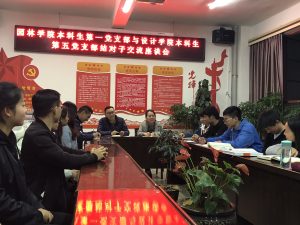 第一部分活动为支部党员交流座谈会,于下午7点在A510开展,园林学院本科生第一党支部陈邵元同志主持。座谈会上双方就党务工作经验、专业认识、如何增强设计与园林之间的相互联系以及今后“结对共建”工作的建议等方面进行充分交流,并在思想汇报的查阅,党小组制度的建立以及考察发展积极分子的方法等方面进行了深入探讨。