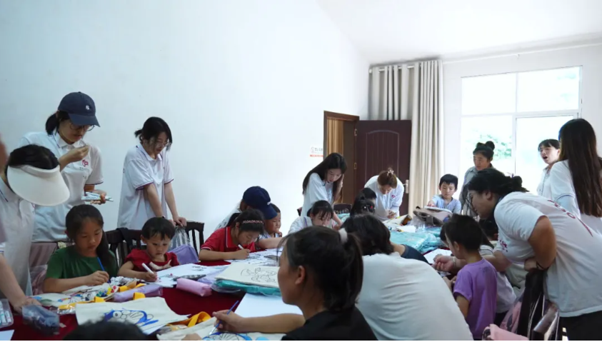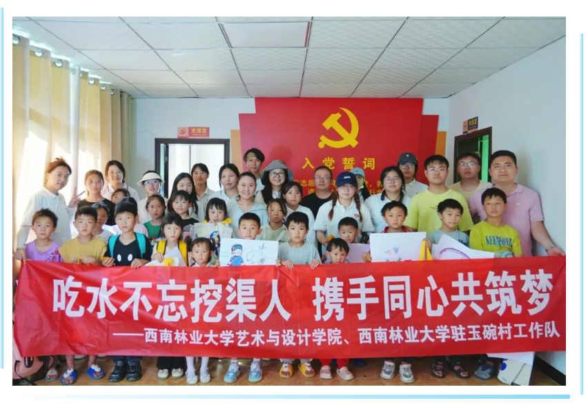 研学结束,实践团成员又走进出水堰爱国主义教育基地,开展“爱心画笔绘振兴,纯真童梦筑大关”主题活动,带领玉碗村的20多名中小员工开启“童心向党,梦绘中华”之旅。活动中,实践团还为孩子们赠发了精心准备的文具礼品。