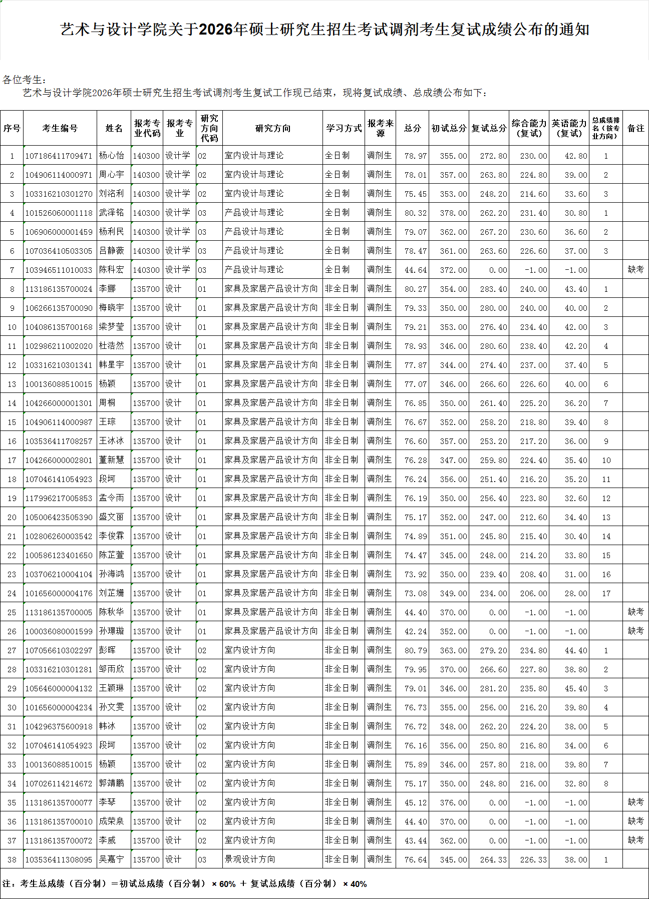 9728太阳集团关于2026年硕士研究生招生考试调剂考生复试成绩公布的通知